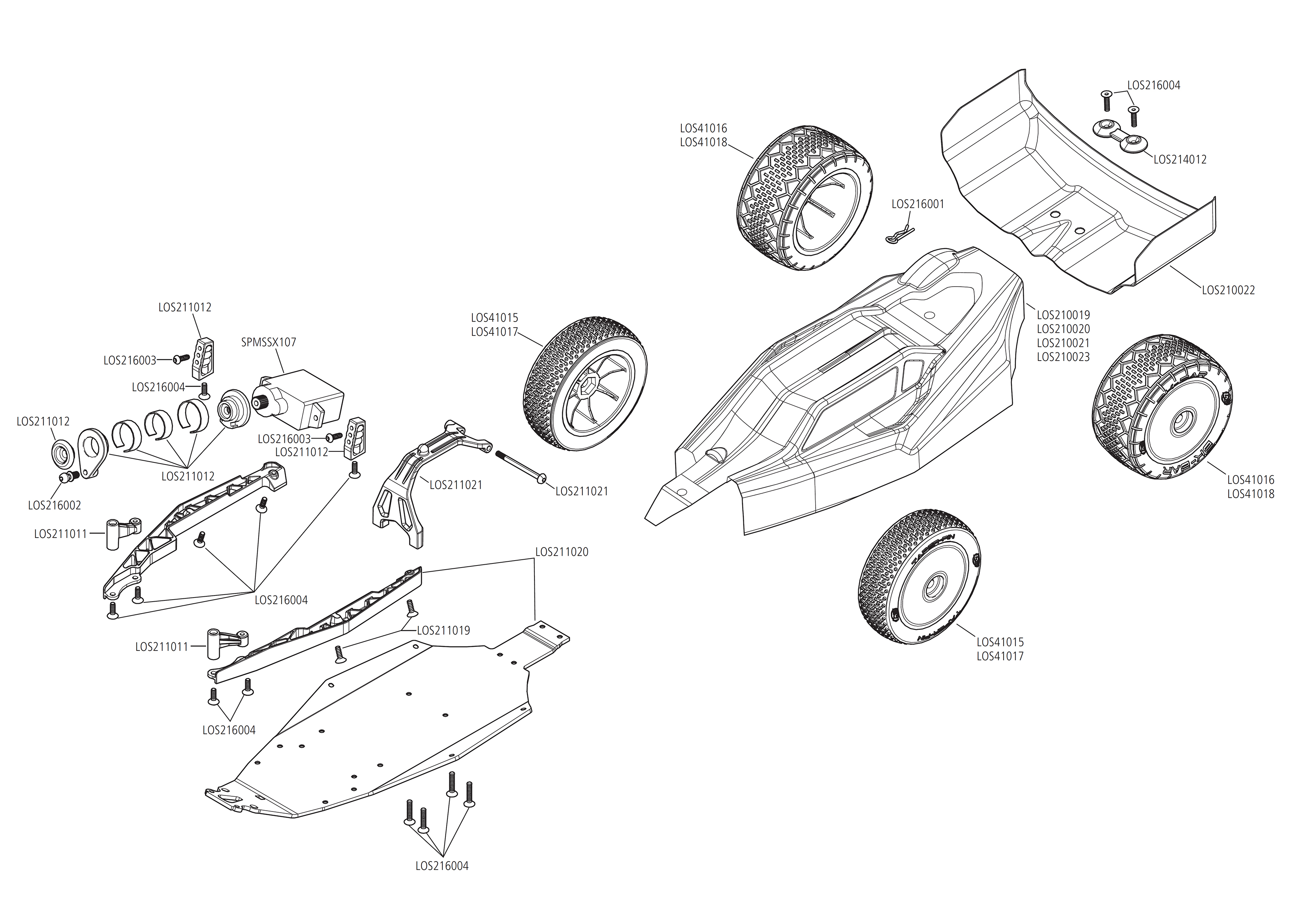 Exploded View Losi Mini B 1 16 Rtr Chassis Astra